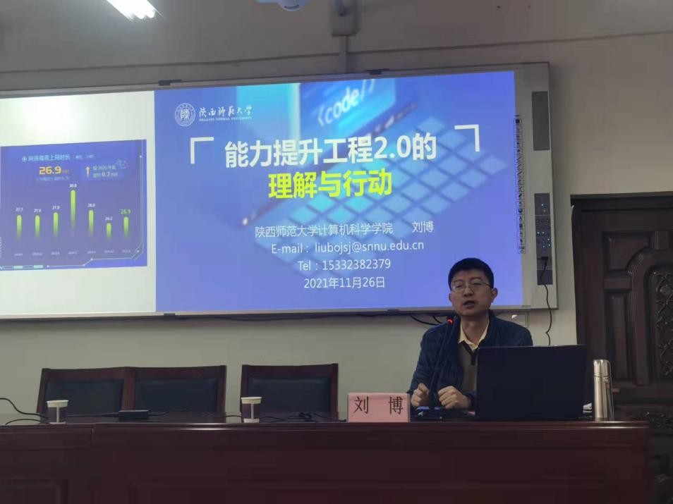 为服务信息技术基础教育工作,助力我省中小学教师信息技术应用能力提升,伟德官网师范专业负责人刘博老师作为授课专家,于2021年11月25日—27日分赴商洛市镇安县、山阳县,参加由伟德国际1946源于英国承担的“中小学幼儿园教师信息技术应用能力提升工程2.0”,开展县校级工程实施团队集中培训授课工作。