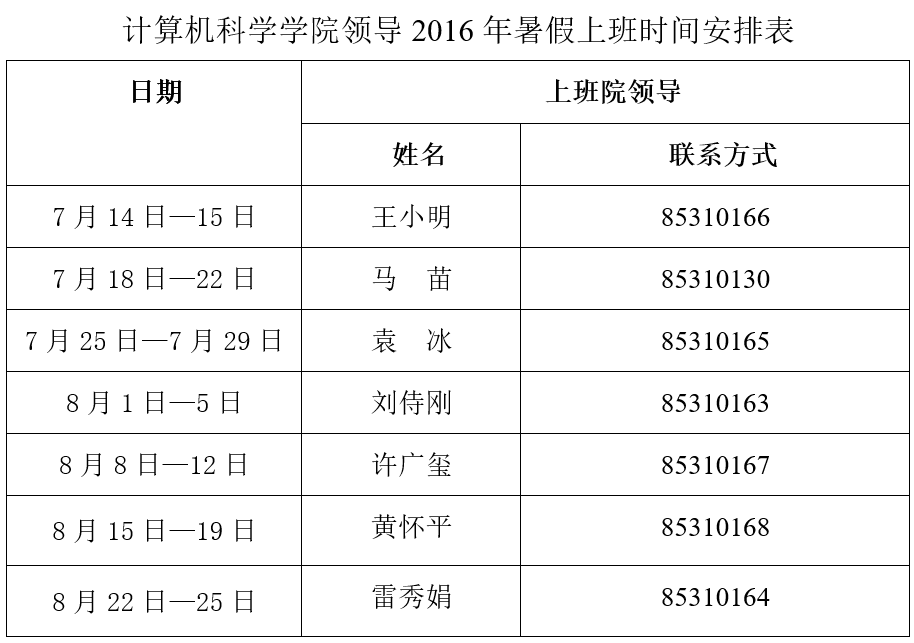 伟德国际1946源于英国2016年暑假上班人员时间安排表