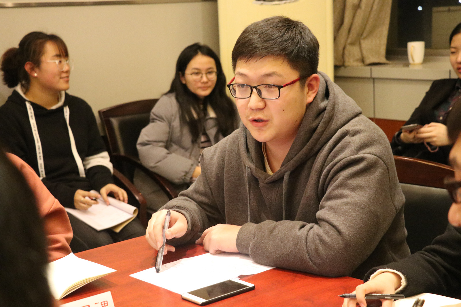 郭老师讲授完毕之后,同学们深受鼓舞,纷纷阐述了自己的学习心得,描述了自己所在学生组织的学习情况,谈了自己的学习体会。马列理论读书社成员隋丰隆以一番“梦想+实干”的话语鼓励同学们奋进;新闻中心主任刘佳华传达了新闻中心全体同学立志做心怀奉献的新闻人的决心;学生会主席李文亮表示学生会邀请了党员同学讲授十九大精神,组织开展了集中学习,他认为学生组织一定要负起责任,为学院师生服务。研究生会刘远恒、王敏,研究生班长王敏、团支部书记王婷、党支部书记皮安琪,马列理论读书社副社长郑晓龙,本科生团支部书记韩旭、周瑜森、陈子桐、徐卉等其他学生组织干部和团支书交流了自己的看法和感触,并表示将学以致用,带领其他同学积极认真学习,将十九大精神谨记于心并付诸实际行动。郭老师对研究生党员骨干带动团员学生、党支部带动团支部学习的方式给予了肯定,希望各位干部在组织同学们学习时应当注意方法,活动需“接地气”,调动同学们的积极性,要贴近专业学习与生活实际,以思想学习促业务学习,大家达成“思想更先进,业务更娴熟”的共同认识。