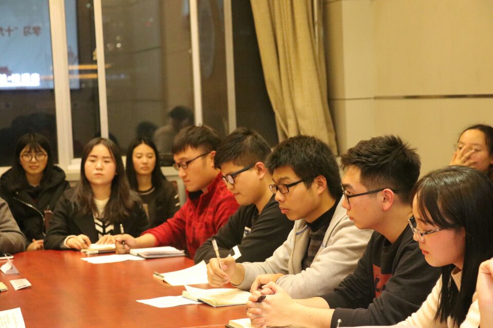 为深入学习宣传贯彻党的十九大精神,继续推进“一学一做”学习教育,伟德官网团委于12月3日晚在文津楼学院会议室组织召开了微团课录制及十九大精神专题学习交流会。此次会议以 “青春奋进正当时,‘团’聚筑梦展风华”为主题,围绕“我最喜欢的习近平总书记用典”这一话题进行交流。学院团委书记郭康凌、团委副书记、各班团支部书记,研究生会、学生会、新闻中心、计算机科学协会、马列理论读书社等学生组织主要负责人参加了会议。会议由团委副书记华亦琳主持。